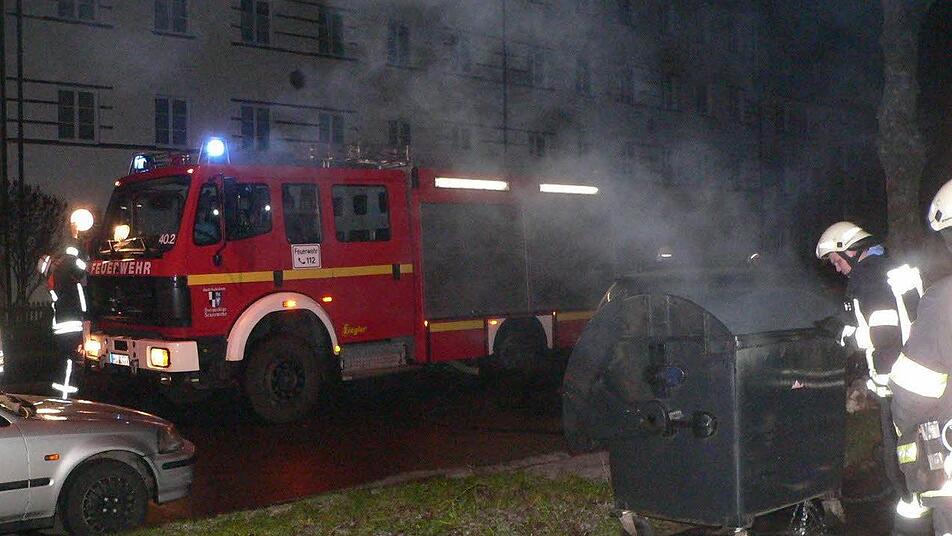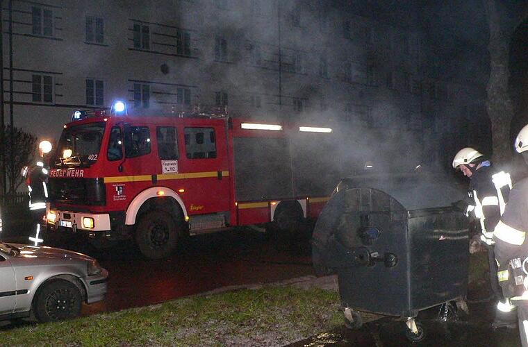 Nur einige Minuten später brannte eine Mülltonne beim Rondell hinter der Stadthalle. Und gegen 2 Uhr stand eine fahrbare Restmülltonne in der Caspar-Fischer-Straße in Flammen (Foto). Die Feuerwehr hatte die Lage im Griff und bekam die Brände rechtzeitig unter Kontrolle, bevor Schlimmeres passieren und bevor größerer Schaden entstehen konnte. "Wir konnten gegen 3.30 Uhr einrücken, und die Nacht blieb dann ruhig", sagte Einsatzleiter Weich.