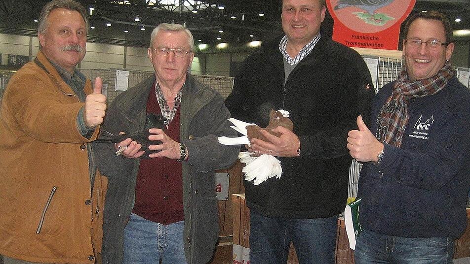 Denn in Leipzig waren auch andere Kulmbacher Züchter erfolgreich. Neben dem begehrten Titel "Europachampion" wurden einzelne Tiere auch mit einem Europaband und Siegerband ausgezeichnet. Mit Günther Kamps (Verein Thurnau, Fränkische Trommeltauben in schwarz), Uwe Langhammer, (Neudrossenfeld, Bernburger Trommeltauben, rot) Helmut Ulbrich (Thurnau, Orientalische Roller, gelbfahl), Werner Feulner (Marktschorgast, Brünner Kröpfer, weiß) und Fritz Müller (Thurnau, Zwerg-Wyandotten, braun-porzellanfarbig) konnte der Kreisverband fünf Europameister stellen. Hier wird der Titel nicht für ein Einzeltier vergeben, sondern es zählt das Gesamtergebnis einer Kollektion von vier Tieren. Die Stimmung bei der Heimfahrt war natürlich sensationell...