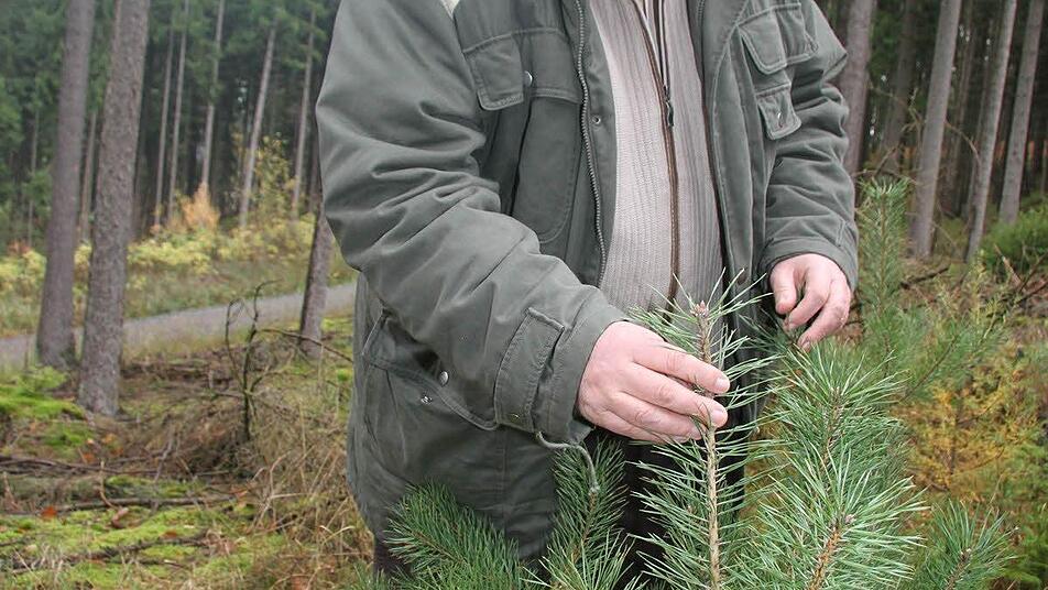 Denn ein gesunder Wald soll ein gut durchmischter Wald sein - also ein Wald, der aus vielen verschiedenen Baumarten besteht, der Nadel- und Laubbäume hat. "Ich schaue zum Beispiel bei der natürlichen Verjüngung genau, wie hoch die Verbissschäden sind und ob natürliche Verjüngung stattfindet", sagt Gleißner. Im Wald oberhalb der Holzmühle, zwischen Kulmbach und Kronach - es ist das Revier von Albin Schmidt - ist die Wildpopulation in Ordnung und nimmt nicht überhand. Sogar auf freien Flächen, die ein Sturm kahl geschlagen hat, ist natürliche Verjüngung da. "Hier haben wir auf engstem Raum zehn verschiedene Baumarten und mehr", erklärt Fritz Maier stolz.