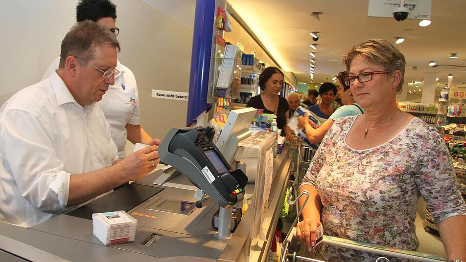 "Ich muss ehrlich sagen, dass ich sehr verwundert war, wie viele gekommen sind", sagt der Oberbürgermeister. Denn die Schlange an seiner Kasse reichte im Nu durch den halben Markt.