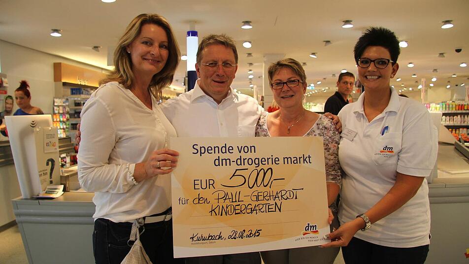 Schlussendlich hat der Kulmbacher Oberbürgermeister bei seiner Aktion innerhalb einer Stunde Waren im Wert von 2440,50 Euro verkauft. "Ich stocke den Betrag auf - wir spenden 5000 Euro für den Paul-Gerhardt-Kindergarten", verkündete dann dm-Filialleiterin Nadine Litt und überreichte Elke Wuthe und Monika Hoffmann auch prompt den symbolischen Scheck.
