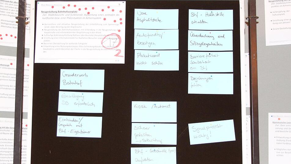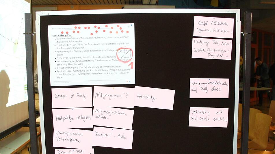 Mehrere Punkte sind es, die die Bürger besonders bewegen. Aus 23 Themenkomplexen kristallisierten sich drei heraus: die Gestaltung des Konrad-Popp-Platzes, des Bahnhofsvorplatzes sowie der Hauptstraße. Und dabei spielte die Frage nach einer ausreichenden Zahl von Parkplätzen eine nicht unerhebliche Rolle.