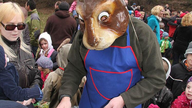 Und der Ablauf ist immer derselbe: Erst toben die Kids über die Wiese. Der Musikverein Weiher-Mangersreuth stimmt einige zünftige Ständchen an. Und ehe Langeweile aufkommt, tauchen auch schon oben auf der Hahnsreuth die Osterhasen auf. Nicht nur die großen Osterhasen, sondern auch ein paar kleine Häschen sind neuerdings mit dabei.