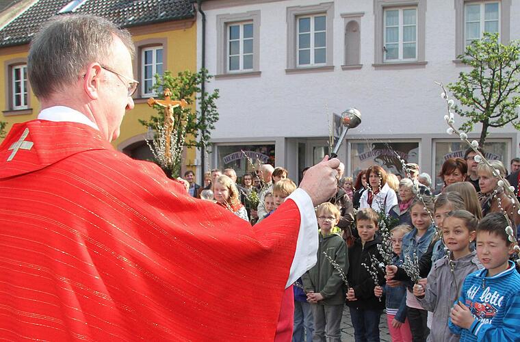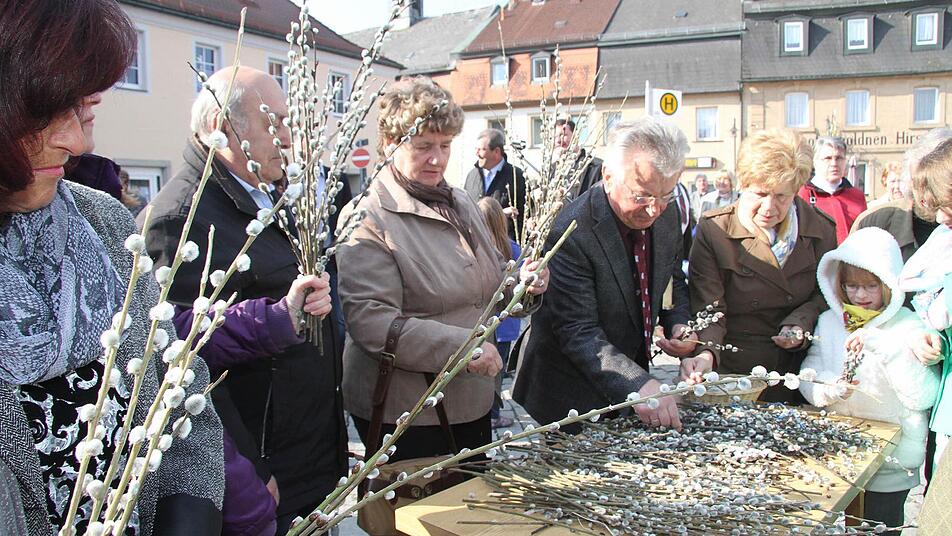 Heuer kamen so viele Katholiken auf den Marktplatz wie seit Jahren nicht mehr. Dekan Hans Roppelt erinnerte daran, dass mit dem letzten Fastensonntag "die wichtigste Woche" im Kirchenjahr beginnt - die Heilige Woche. Am Palmsonntag werde des Einzugs Jesu in Jerusalem gedacht. Er jubelte dem Volk zu, das Palmzweige schwenkte. Palmen gehörten einst zu den heiligen Bäumen.