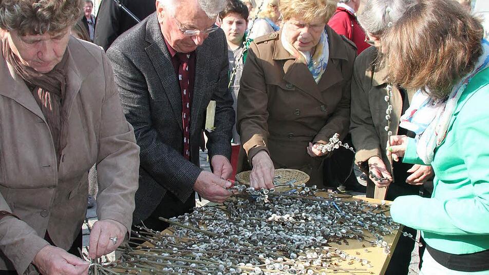 Bei der Palmweihe in Stadtsteinach offenbarte sich fast ein kleines Wunder. Während die Palmkätzchen in den Gärten wegen des milden Winters längst ausgetrieben haben, hatte die Mesnerfamilie Dremer noch zuhauf Palmkätzchen mit kleinen flauschigen, behaarten Knospen.