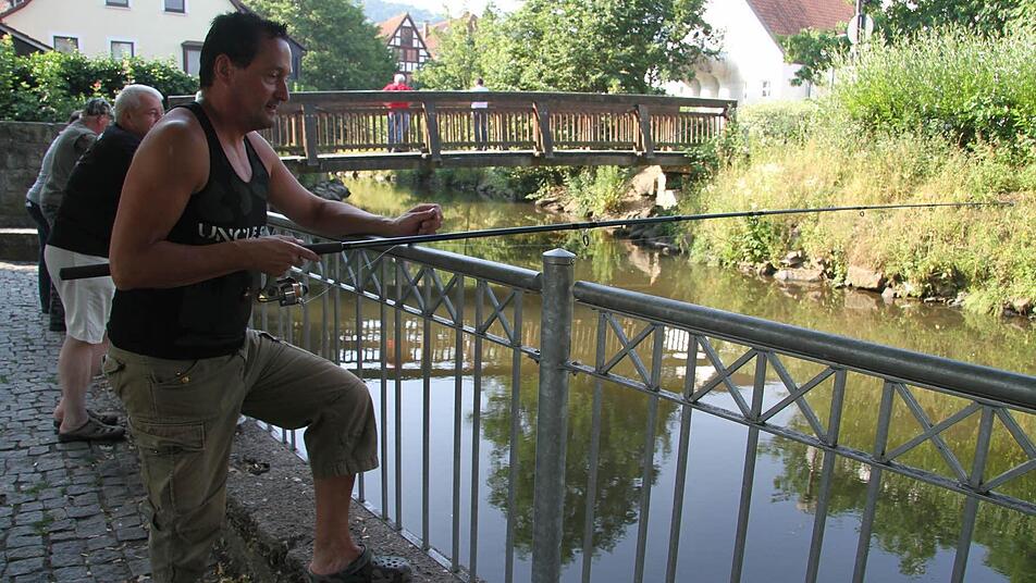 "Ich habe ein paar kleine Forellen gefangen", sagte Harald Müller, der direkt hinter der Stadthalle geangelt hat. Und so ging es vielen.