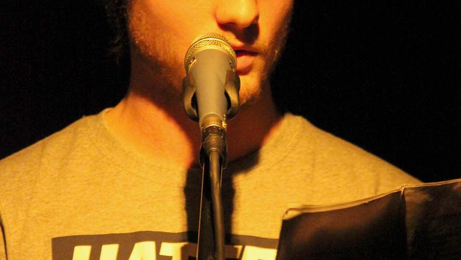 Übersetzen lässt sich der Begriff mit "Dichterwettstreit": Autoren lesen selbst verfasste Texte vor, das Publikum entscheidet, was ihm am besten gefällt. Von Konkurrenz freilich ist wenig zu spüren. Es geht entspannt zu, fast familiär. Daran hat auch "Acoustic Cascade" alias Philipp Stenger seinen Anteil: Der junge Mann präsentiert im Lauf des Abends leise, lyrische Songs zur Gitarre.
