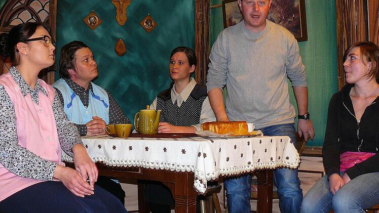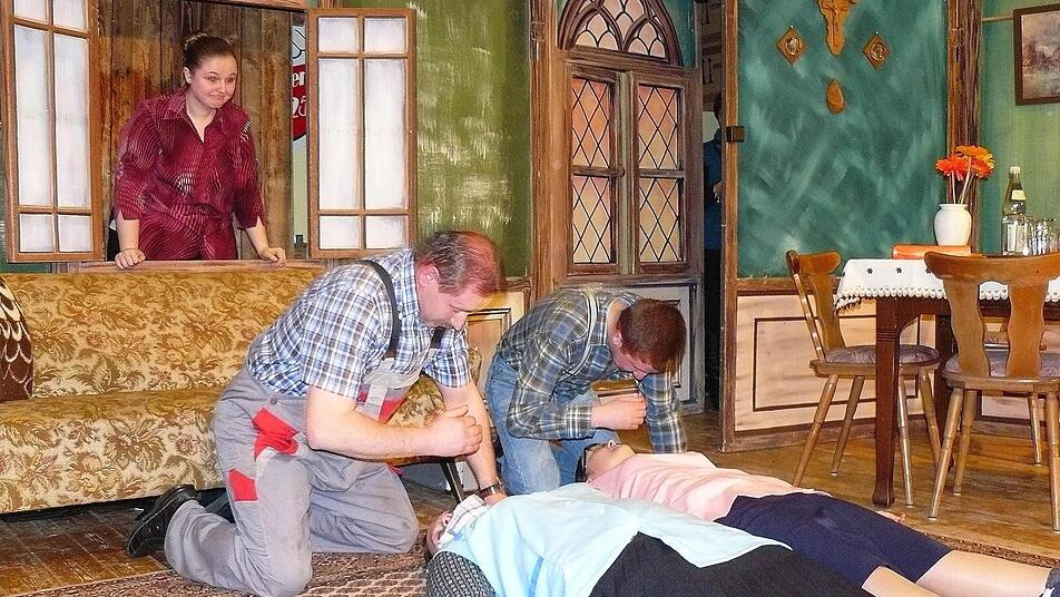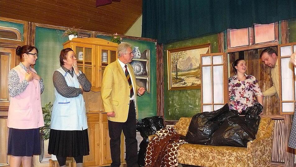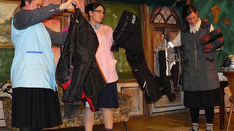 Schon das Betreten der Bühne durch die drei alten Jungfern Alma, Berta und Christa Jung (Carina Kremer, Manuela Lindner und Madeleine Linzmaier) löste die ersten Lachsalven aus. Schnell wurde klar, dass die drei geizigen Schwestern - alleine auf ihrem Bauernhof in Reichenbach wohnend - karg und sparsam lebten. Strom wurde gerade einmal im Wohnzimmer angeknipst, ansonsten ging alles per Hand vonstatten - Energie kostet ja einen Haufen Geld.