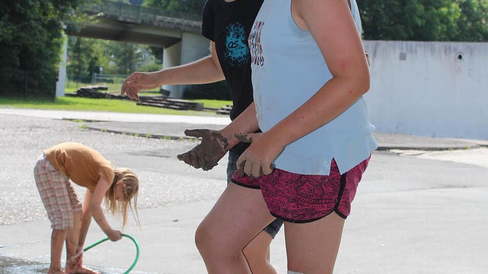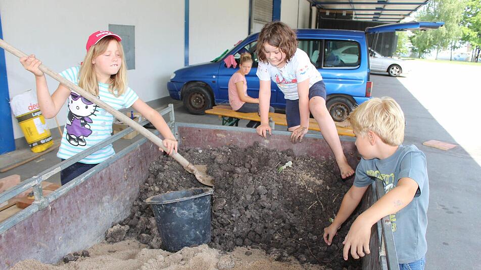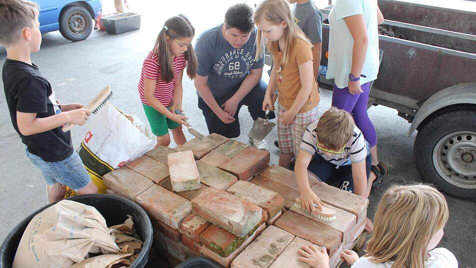 Bevor das getestet werden konnte, waren erst einmal Säuberungsarbeiten angesagt. Gemeinsam räumten die Buben und Mädchen unter der Regie von Uschi Prawitz und Oliver Leimenstoll den Backofen aus und kehrten den Sand aus, der abgefallen war. Und dann schleppten sie Feuerholz heran.