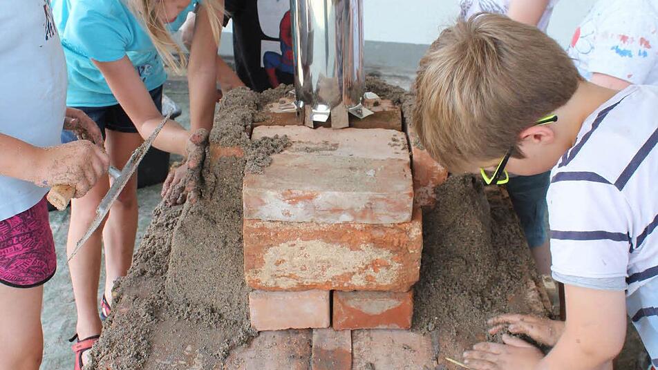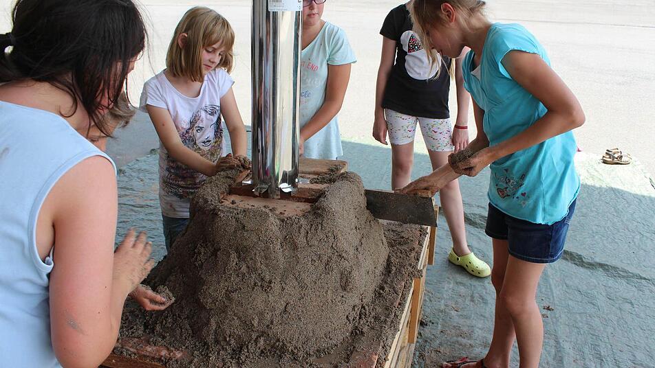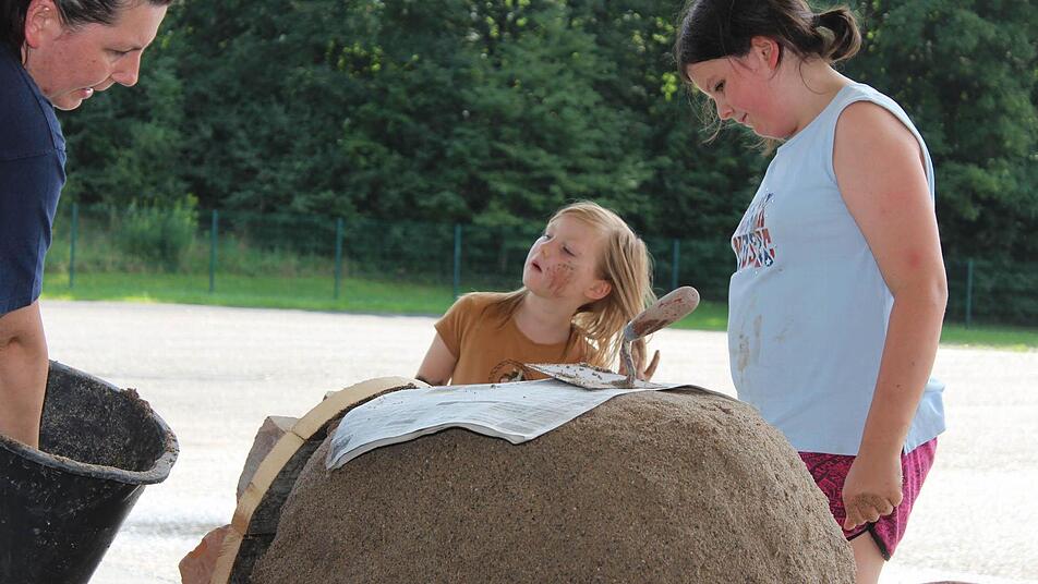 Die Kinder der Kulmbacher Juniorakademie waren ziemlich aufgeregt. Wird der Lehmofen, den sie vor einer Woche selbst gebaut hatten, so weit getrocknet sein, dass man ihn in Betrieb nehmen kann? Und vor allem: Wird er auch funktionieren?