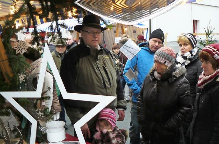 Klaus Sesselmann von der KlaRa Werbung Rugendorf verkauft weihnachtliche Produkte. Er wird auch speziell für den Markt eigene Glühweintassen mit Rugendorf-Motiv für den Ausschank fertigen, die dann zum Pfandpreis erworben werden können.