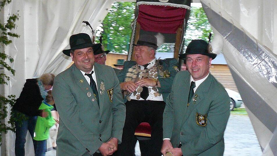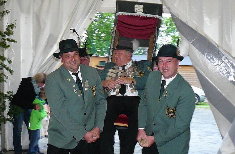 In der Sänfte trugen vier starke Männer den neuen Hauptschützenkönig durchs Zelt.