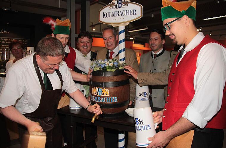 Beim Probeanstich am Dienstagvormittag erklärten Technikvorstand Jörg Lehmann und Diplom-Braumeister Hermann Nothhaft die Unterschiede des Gerstensafts:
