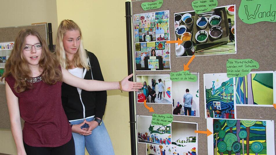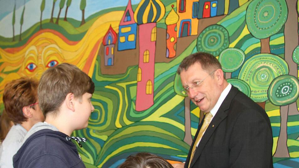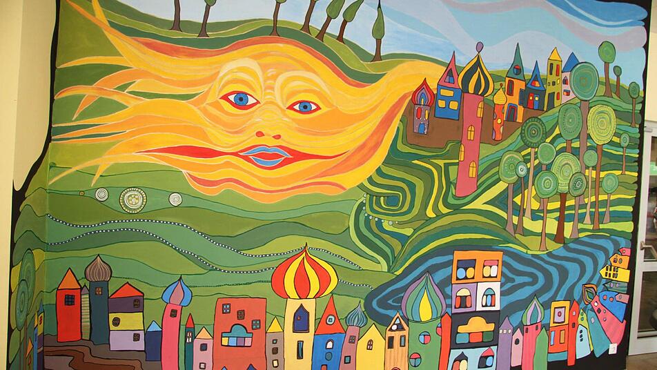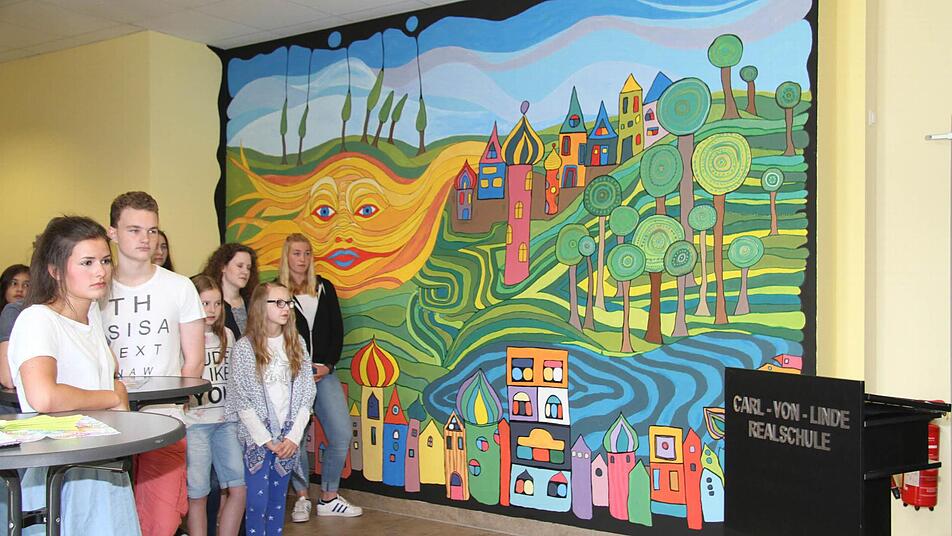 Sieben Monate haben Schüler der Carl-von-Linde-Realschule an der Neugestaltung einer Wand gearbeitet- frei nach dem Künstler Hundertwasser.