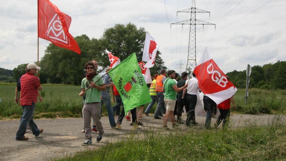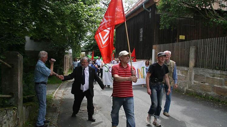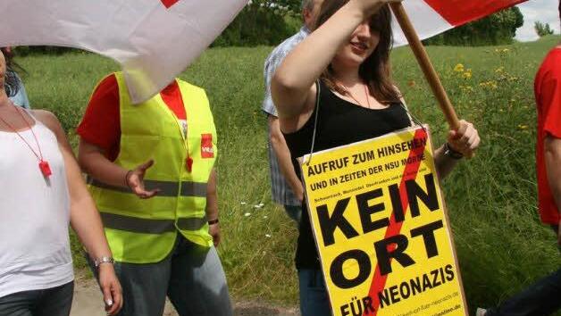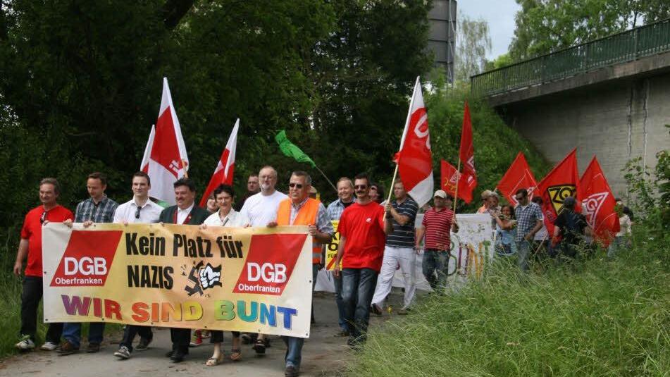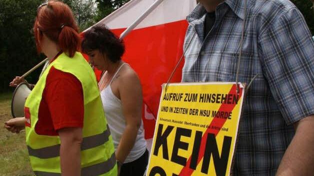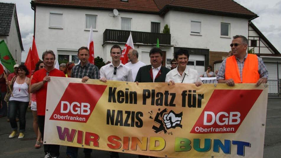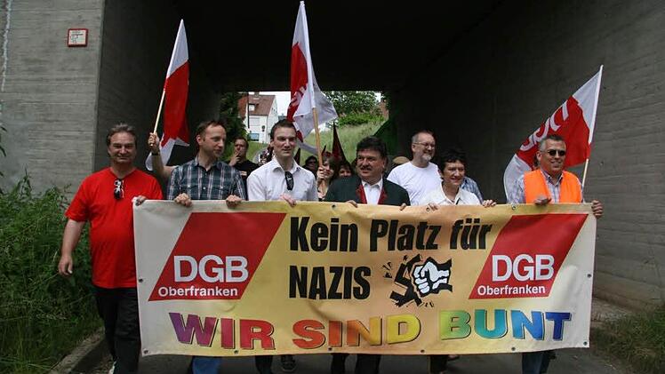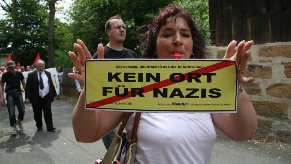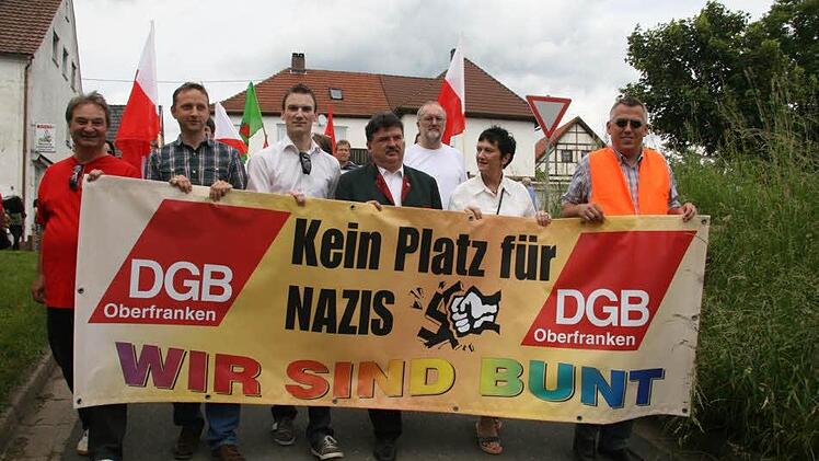 Denn tatsächlich sind die Rechten, die seit Jahren auf einer Wiese in Schwarzach tagen, dem Ort fern geblieben. "Wir sind zufrieden heute, das ist ein guter Tag", freute sich Tina Krause von der Gewerkschaft Verdi. "Ich hätte nicht geglaubt, dass die Rechten wirklich fern bleiben. Aber das ist ein Erfolg für uns", kommentierte auch Tina Kummer, die sich seit Jahren im Aktionsbündnis Kunterbunt für Stadt und Landkreis Kulmbach und Bayreuth unter dem Motto "Nazis entgegen treten" engagiert.