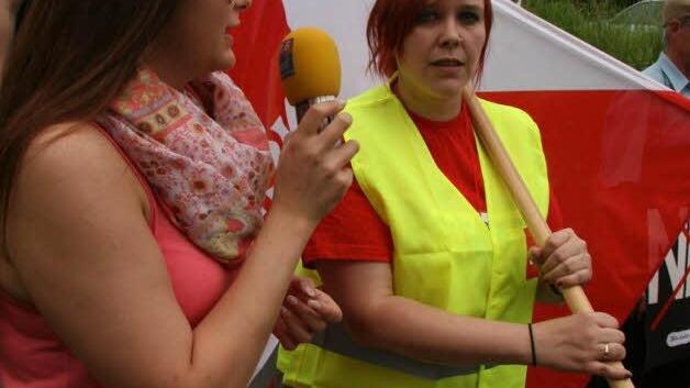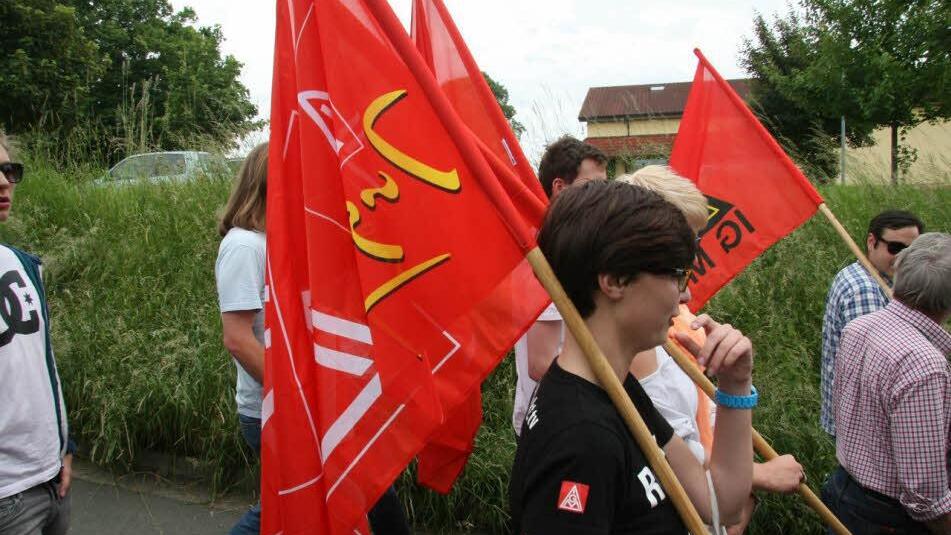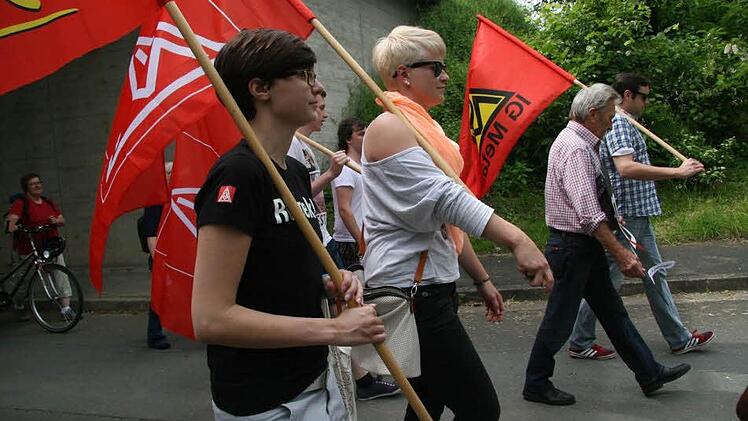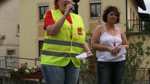 Nach einem Demonstrationszug durch den Ort feierten die Mitglieder der Gewerkschaften, der Aktionsbündnisse gegen Rechts und die sonstigen Interessierten in Schwarzach ein Fest. Tina Kummer und Tina Krause machten noch einmal auf die rechten Gefahren aufmerksam.
