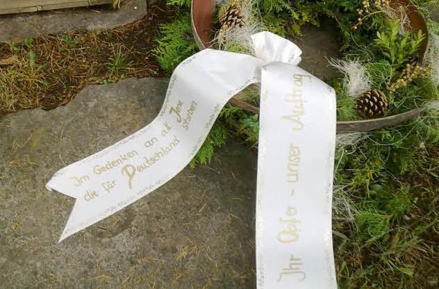 Komplett richtig wäre es, wenn es auf dem anderen Teil der Schleife hiese: "Im Gedenken an all Jene, die WEGEN Deutschlands starben". Für Deutschland sind sie sicher nicht gestorben, sondern wegen des Größenwahnsinns seiner Führer.