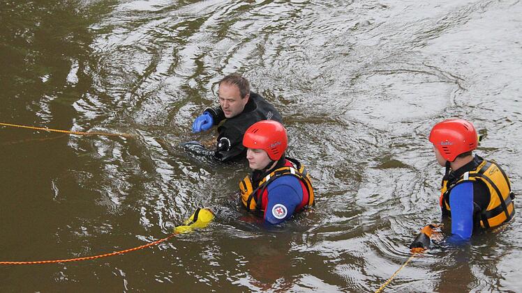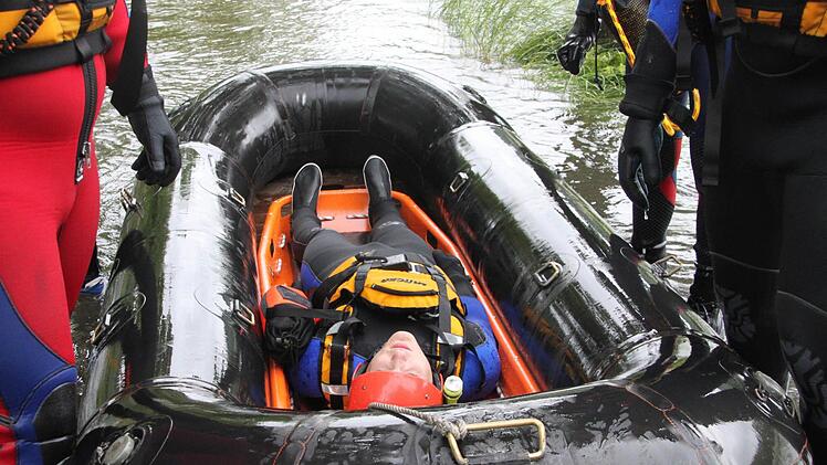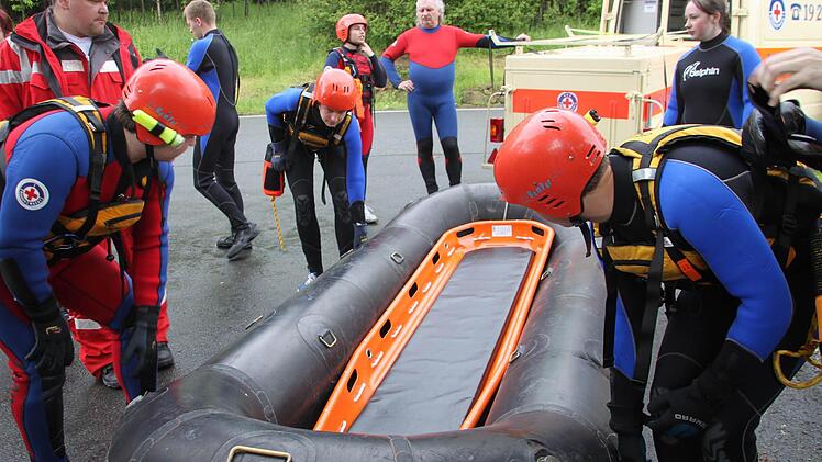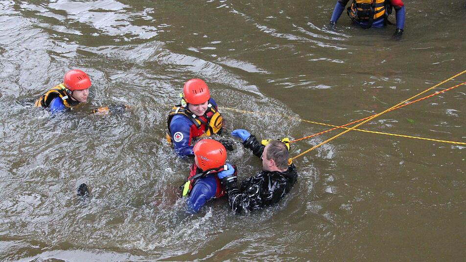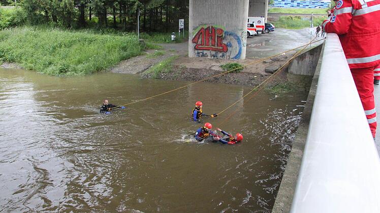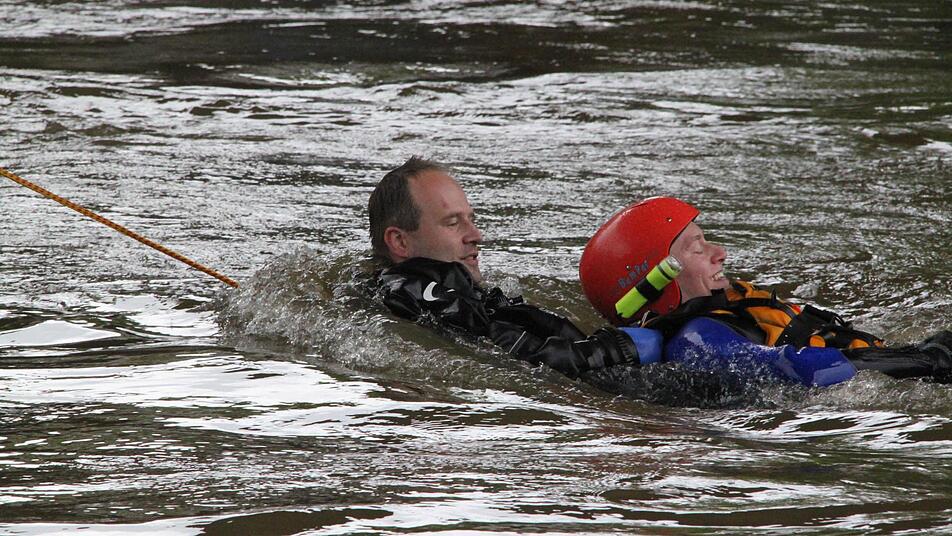 Junge Leute aus der Region haben am Wochenende in Kulmbach eine Weiterbildung absolviert. Auf einer überfluteten Straße und in heftiger Strömung übten sie, was im Ernstfall tadellos klappen muss.