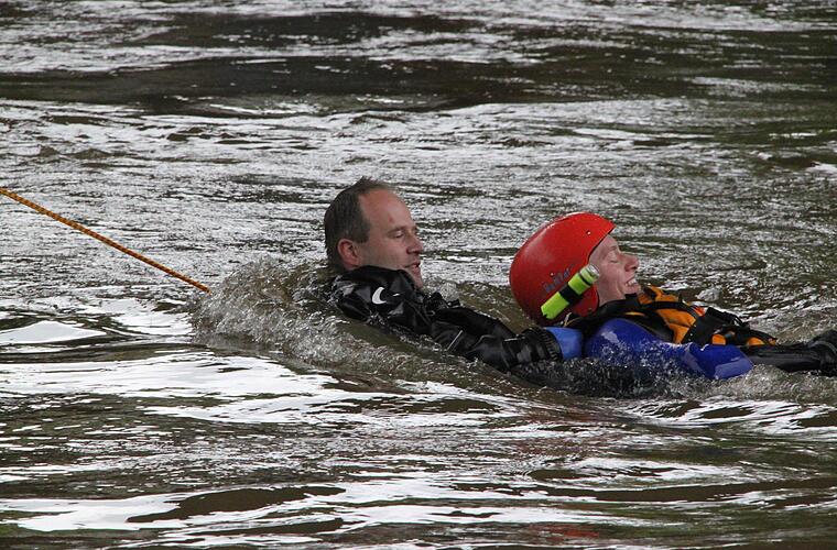 Nicht immer geht ein Wurf gleich in die richtige Richtung. Auch hier macht erst Übung den Meister. In diesem Fall ist das kein Problem. Die Teilnehmer an der Weiterbildung sind allesamt gute Schwimmer, kraulen im Fall des Falles seitlich aus der Strömung ans Ufer.