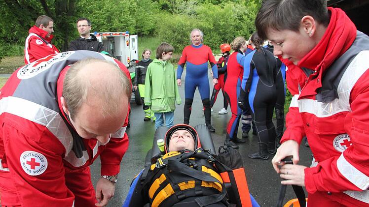 Zwölf junge Leute zwischen 17 und 20 Jahren haben sich am Wochenende im Raum Kulmbach auf ihre Prüfung vorbereitet. Sie sind ausgebildete Rettungsschwimmer, engagieren sich in den Kreisverbänden Kulmbach und Bayreuth der Wasserwacht. Nun bilden sie sich weiter, pauken jede Menge Theorie - und wollen die auch in der Praxis anwenden. Das Hochwasser, das die Region fest im Griff hat, kommt ihnen da gerade recht: Ein ideale Trainingsgelände bietet sich rund um Kulmbach.