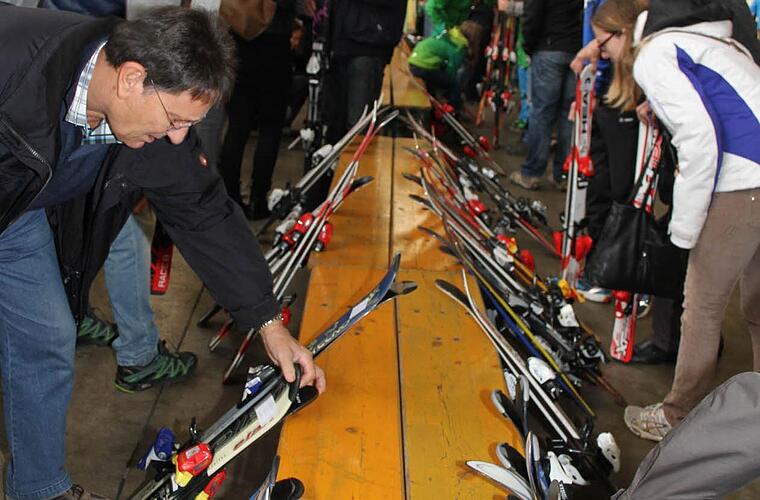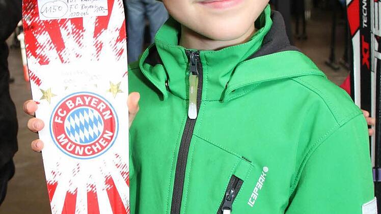 "Die sind toll!" Finn Seidel (8) hat innerhalb von nur fünf Minuten ein paar Skier seiner Wahl gefunden: mit Bayern-Logo, in der passenden Länge. Finn ist FCB-Fan. Harald Hempfling hat gleich zwei Paar Skier in der Hand. "Mein Sohn Lukas fährt dieses Jahr mit der siebten Klasse ins Skilager. Mal sehen, für welche er sich entscheidet. Das Angebot ist jedenfalls riesig.
