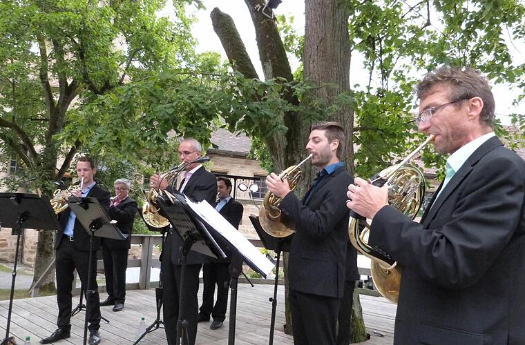 Die Hornisten des Bayreuther Festspielorchesters in Wernstein einen Kunstgenuss der besonderen Art. Nur das Wetter spielte nicht so ganz mit.