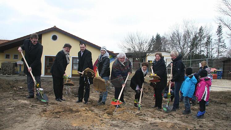 Große freuen sich auf die Babys Zum Spatenstich, bei dem auch Landrat Klaus Peter Söllner sowie die CSU-Landtagsabgeordneten Gudrun Brendel-Fischer (CSU) und Martin Schöffel (CSU) sowie zahlreiche Gemeinderäte mit von der Partie waren, hatten die Kinder der Tagesstätte sogar ein Baulied einstudiert. Denn auch sie freuen sich schon auf die "Babys". Spätestens Anfang nächsten Jahres soll die Einweihung sein.