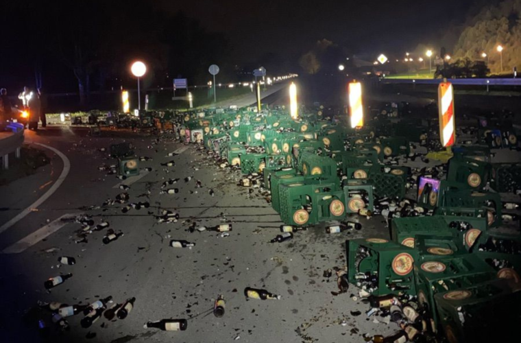 150 Bierkästen landen auf der Fahrbahn - glücklicherweise war es Leergut
