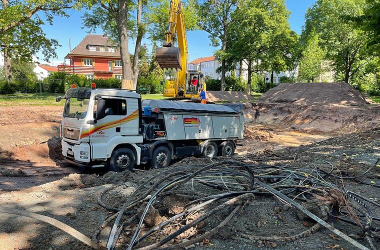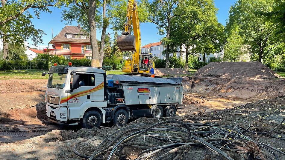 Im Stadtpark haben die Arbeiten für den Bau eines Regenrückhaltebeckens begonnen. Das Projekt ist ein Teil einer groß angelegten Maßnahme.