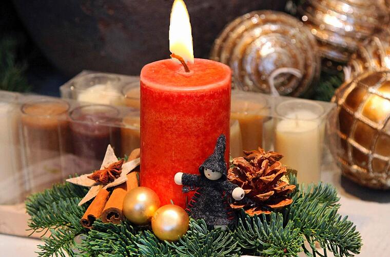 Überall ist Advent, nur bei mir zu Hause nicht. Ich wollte stimmungsvoll geschmückt in die Vorweihnachtszeit starten. Zumindest ein bisschen. Mit Kerzen in Nikolausoptik und ochsenblutfarbenen Kugeln, Lichterketten und Tannenzweigen.
