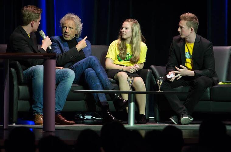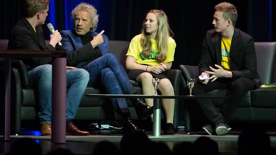 Dass sie mit Thomas Gottschalk ein Interview für die Schülerzeitung "Optimist" live und auf der Bühne machen dürfen, ist klar. Aber wie es ablaufen soll, wissen Carolina Steger, Alexander Wulf und Wolf Ernst vom Caspar-Vischer-Gymnasium nicht - bis sie der Großmeister der deutschen Fernsehunterhaltung auf die Couch bittet.