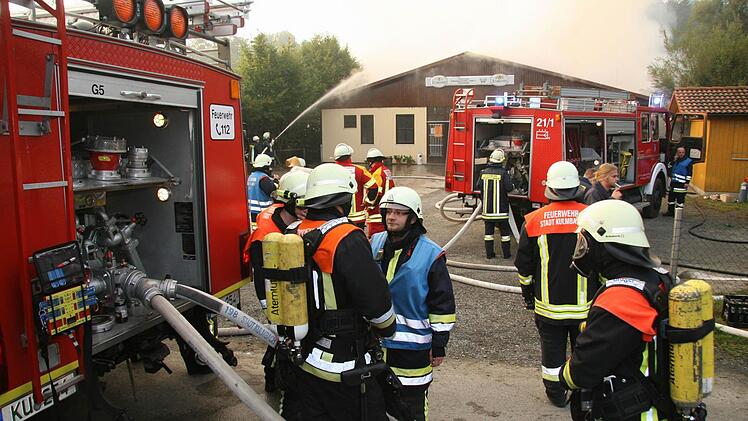 Dann plötzlich wurde klar, dass im Inneren des Gebäudes zwar keine scharfe Munition, aber noch Gasflaschen lagern. In letzter Sekunde brachten Atemschutzgeräteträger die Flaschen nach draußen, um wenigstens eine Explosion zu verhindern.