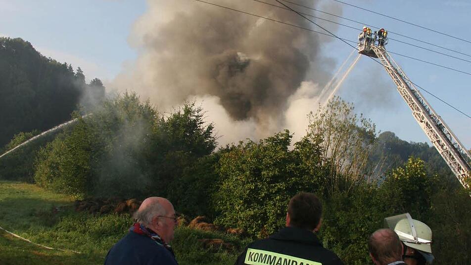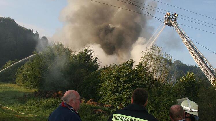 Ein schlimmes Schauspiel gab es in den Morgenstunden des Sonntags in Untersteinach. Was anfangs nur als dichter Qualm, der schon von der Ferne aus zu sehen war, in Erscheinung trat, entpuppte sich schnell als Vollbrand. Feuerwehren aus Untersteinach, Stadtsteinach, Kulmbach, Kauerndorf, Fölschnitz, Helmbrechts, Marktleugast, Ludwigschorgast, Rothwind, See und Kupferberg - also aus den Landkreisen Kulmbach und Hof - rückten an. Auch BRK und THW waren zugegen