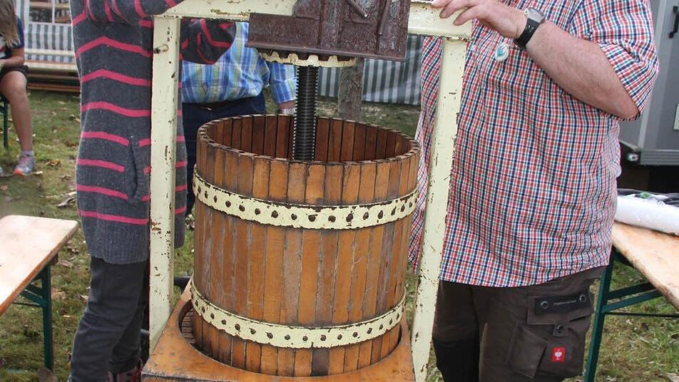 Beim Apfelfest wurde auch im Kelterhaus Saft gepresst - und auf der grünen Wiese mit einer Handpresse. Außerdem gab es einen Markt und viele Attraktionen für jung und alt.