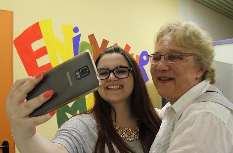 Gemeinsam ließen Schüler, Eltern und Lehrer in der Mensa die Schulzeit ausklingen. Viele Schüler nutzten die Gelegenheit, um noch ein letztes Selfie von sich und den Lehrern zu machen. Denn ganz so leicht ist der Start in einen neuen Lebensabschnitt dann eben doch nicht...