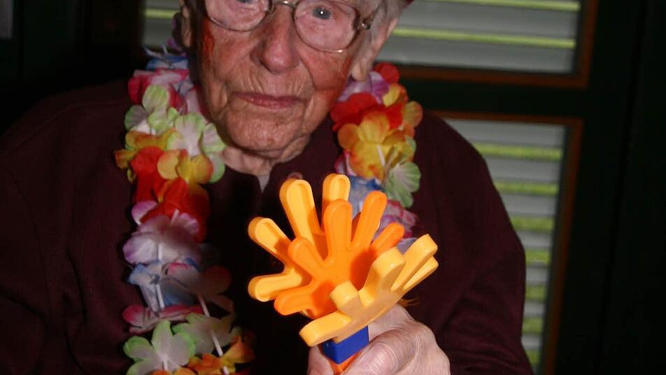 Ursula Schmidt ist 91 Jahre alt und lebt nach einem Schlaganfall im Stadtsteinacher Seniorenheim. Ihr fällt das Sprechen schwer, doch beim Fasching ist sie dabei - mit Hütchen und Blumenkette. Denn in diesem Jahr gilbt im Seniorenheim das Motto "Es gibt kein Bier auf Hawaii".