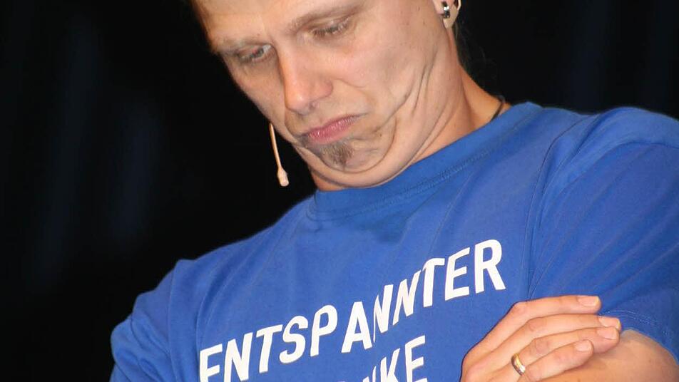 Wenn Stefan Eichner alias "Das Eich" mit seinem leuchtend blauen "Entspannter Franke" T-Shirt auf die Bühne tritt, dann tobt in Kulmbach die Halle. Und genau diese Aufgabe erfüllte Eichner beim Comedy-Marathon in der Dr.-Stammberger-Halle. Er führte durchs Programm, er heizte das Publikum an, und er hatte immer die richtigen Themen mit Lokalkolorit auf der Pfanne.