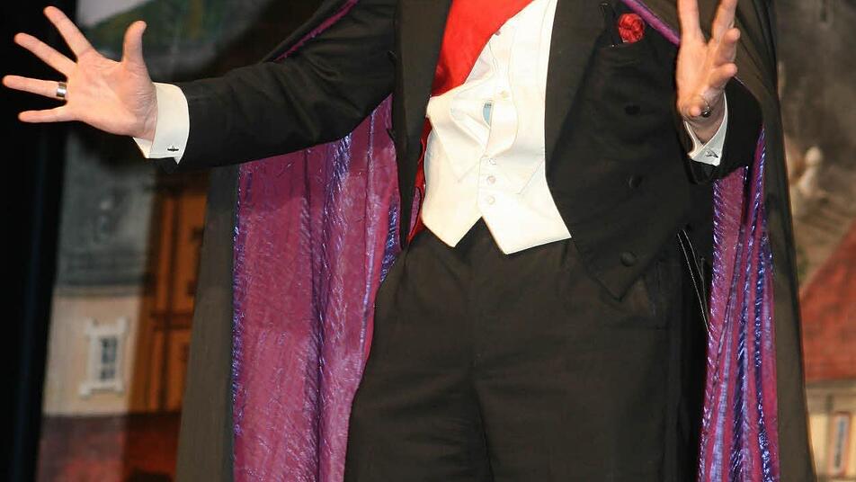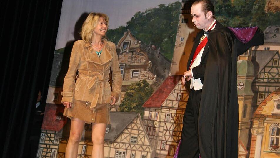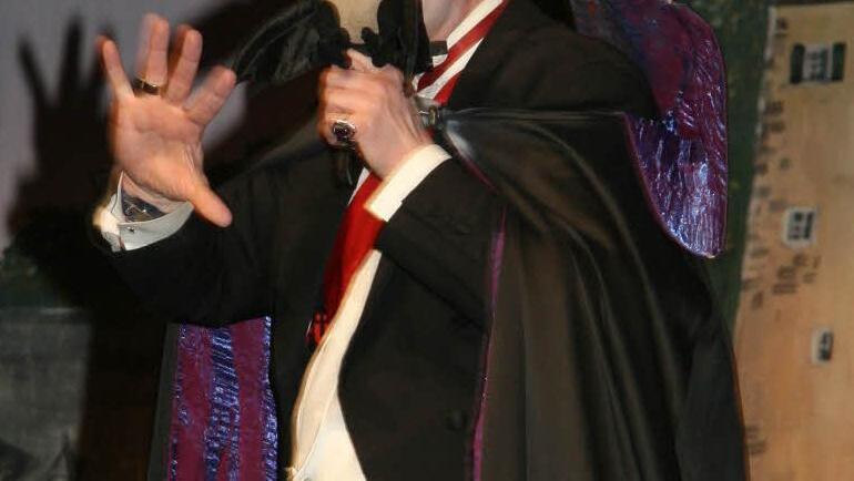 Martin Sierp verwandelte sich in den "Fürst der Finsternis". Und da der Fürst der Finsternis nicht alleine auftreten kann, holte er sich Jutta Förster aus Neuenmarkt als Assistentin auf die Bühne und zauberte mit ihr.