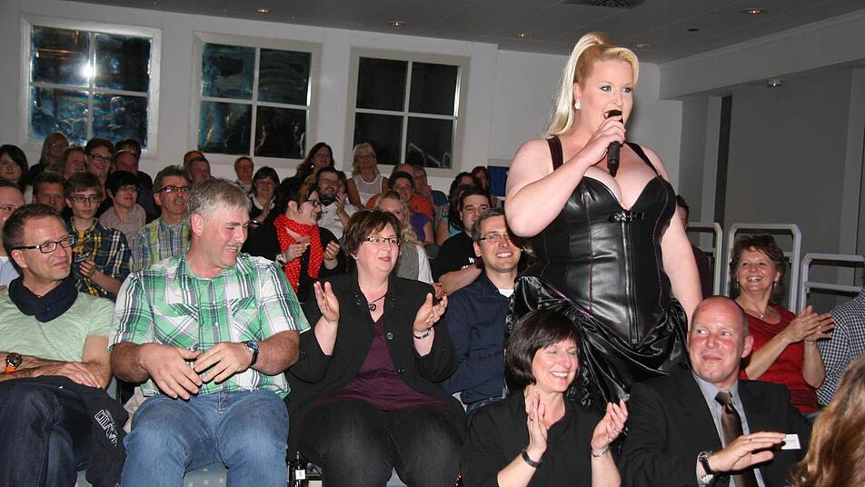Der Kracher beim Comedy-Marathon war die einzige Frau der Nacht: Daphne de Luxe, eine Sexgöttin. "Ich bin euer Appetithäppchen", sagte die in Kronach geborene Künstlerin und unkte über den Diät- und Magerwahn. "Wenn ich's mit joggen versuche, dann habe ich entweder blaue Augen oder ich erschlage unschuldige Dackel", verriet Daphne de Luxe und setzte ihr Oberweite voll in Szene.