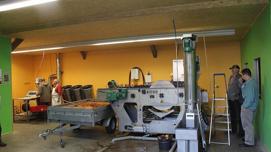 Denn für die Scheune, in der die Anlage steht, wurde eine neue Nutzung gesucht. 2009 wurde die Siebbandpresse angeschafft. Der Hersteller baue auch Anlagen, "die sind so groß wie das Rathaus", sagt Schimpf. 37.000 Euro hat die Presse gekostet, mit Abfüllung sind es 50.000 Euro. Hinzu kamen die Umbaukosten für die Scheune mit 60.000 Euro. "Aber die hätte man eh investieren müssen", sagt Schimpf.