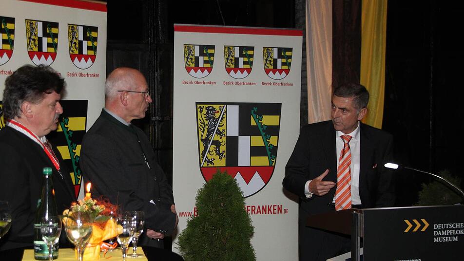 Ein Mann unter Dampf: Am Dienstagabend wurde Landrat Klaus Peter Söllner die Ehrenmedaille des Bezirks Oberfranken in Silber verliehen. Gleich einer Dampflok habe Söllner die Region voran gebracht, erklärte Bezirkstagspräsident Günther Denzler bei der Auszeichnung im DDM.