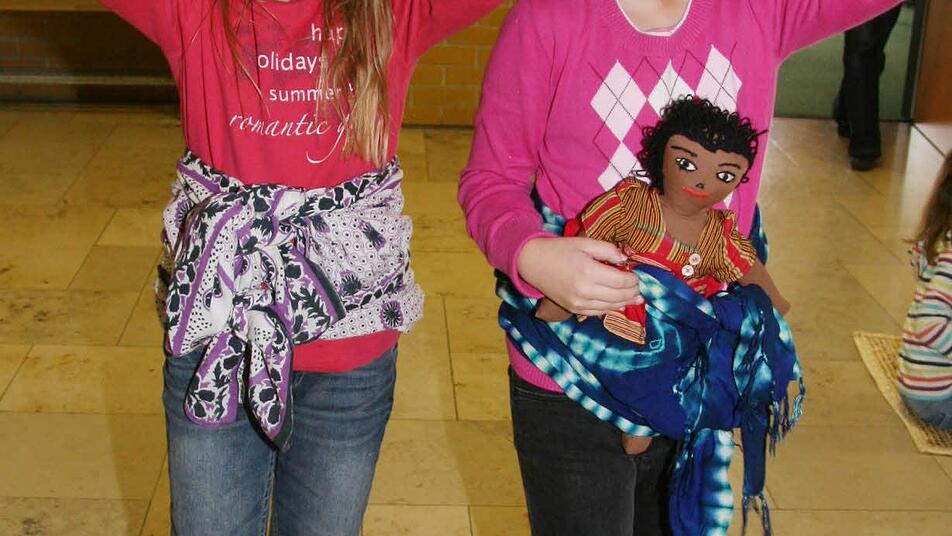 Kinder der Grundschule Stadtsteinach ließen sich am Freitag von Gertrud Schweizer-Ehrler auf teils ungewöhnliche Weise zeigen, wie die Menschen in Uganda leben.