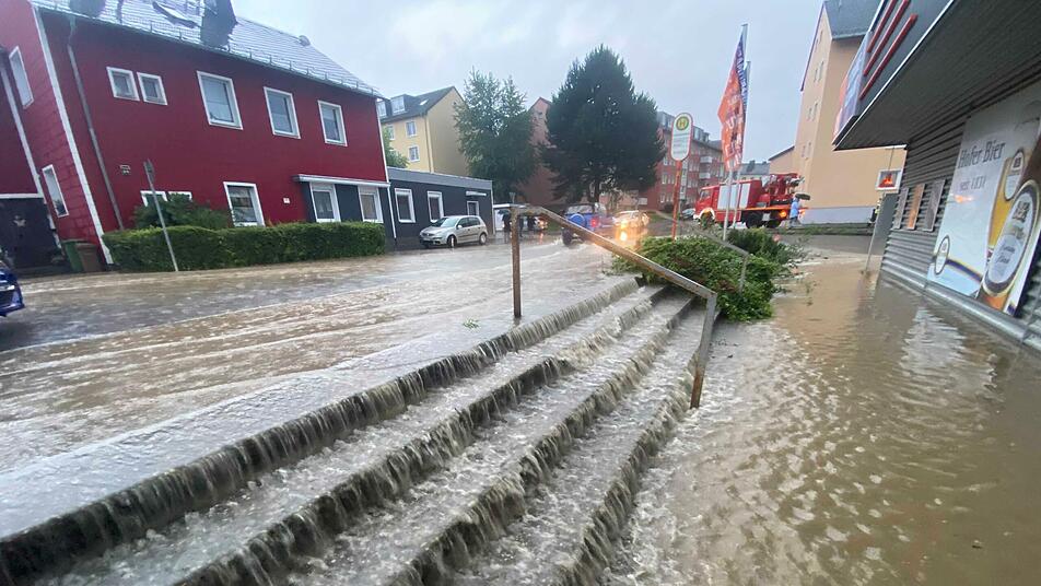 Nach den Unwettern in der Region Hof müssen viele Oberfranken am Mittwoch ihre nassen und verdreckten Keller wieder herrichten. Bis zum frühen Morgen waren die Feuerwehren mit Auspumpen beschäftigt, auch Straßen wurden überflutet. Der Landkreis Hof hatte am Dienstagabend Katastrophenalarm ausgerufen. Binnen zwölf Stunden fielen nach Angaben des Deutschen Wetterdienstes dort bis zu 80 Liter vom Himmel, zudem gab es Gewitter. Von Verletzten war zunächst aber nichts bekannt.