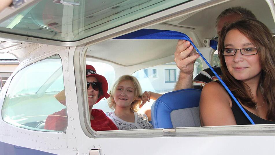 Selina Herzog (13) ist ganz aufgeregt, als sie den Kulmbacher Flugplatz betritt. Anfangs hat sie noch ein wenig Angst in die Maschine zu steigen, doch dann traut sich die 13-jährige doch und hebt ab in die Lüfte.