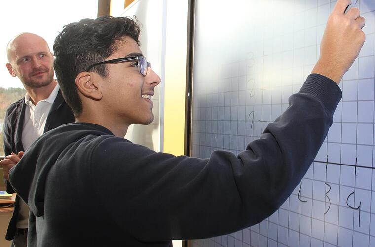 Als Bonbon und als Extra-Lernanreiz ist das Klassenzimmer digital auf dem neuesten Stand: Unterricht mit einer smarten digitalen Tafel, freies WLAN und sogar Handys kommen zum Einsatz. "Wir haben mehr Zeit. Wir können mit Spaß lernen und die Schüler wollen alle", sagt der Klassenleiter.