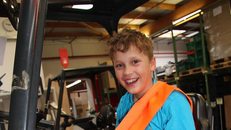 Zimmermann traute sich sogar, einmal auf dem großen Stapler Platz zu nehmen. Absoluter Höhepunkt allerdings war der selbsttätige Roboter bei Maja. Er sucht sich die Einzelteile für die Regale selbst zusammen, bündelt sie.