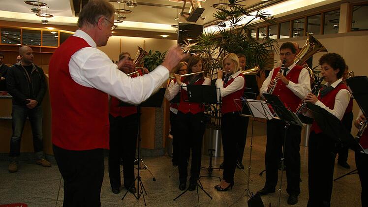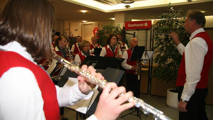 Heinz Konrad hatte zur Feier des Tages einen Richtspruch verfasst. Und der Vorstandsvorsitzende selbst blies ins Tenorhorn und hatte sichtlich Spaß daran. Seitdem er 15 Jahre alt ist, ist Scherr ein begeisterter Bläser. Und seit der Fusion der beiden Sparkassen Kulmbach-Kronach gibt es das eigene Sparkassenblech-Orchester, das von Werner Kurzhals geleitet wird.