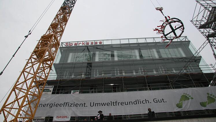So beschloss die Sparkassen-Führungsspitze gemeinsam mit den Vertretern der Politik im Verwaltungsrat, die Hauptstelle zukunftsfähig zu machen. "Die ersten Untersuchungen fanden statt, als viele Banken riesige Löcher in ihren Bilanzen hatten. Anders bei unserer Sparkasse: Besser in ein Gebäude investieren als in Südeuropa Geld abschreiben", wurde als Devise ausgegeben. "Damit war der Weg frei für dieses zukunftsweisende, energetisch wie architektonisch ansehnliche Projekt im Herzen der Stadt", freute sich Scherr bei der Feierstunde anlässlich des "zweiten Frühlings" der Sparkasse und rief zum Ende des ersten Bauabschnittes ein zweites Richtfest aus.