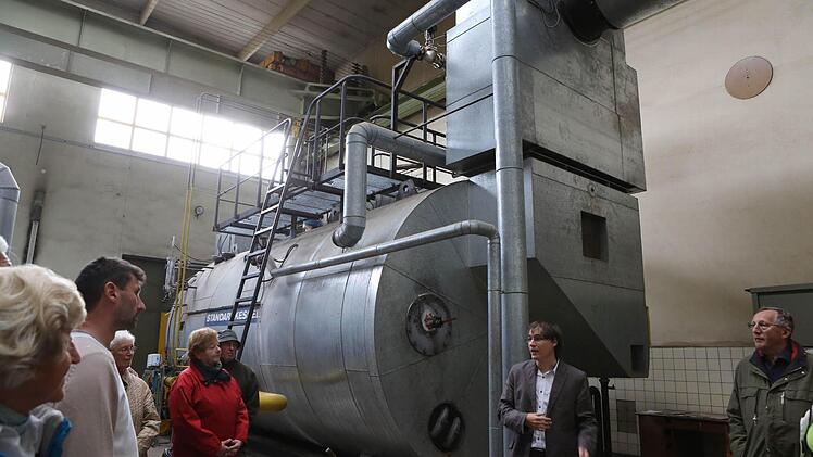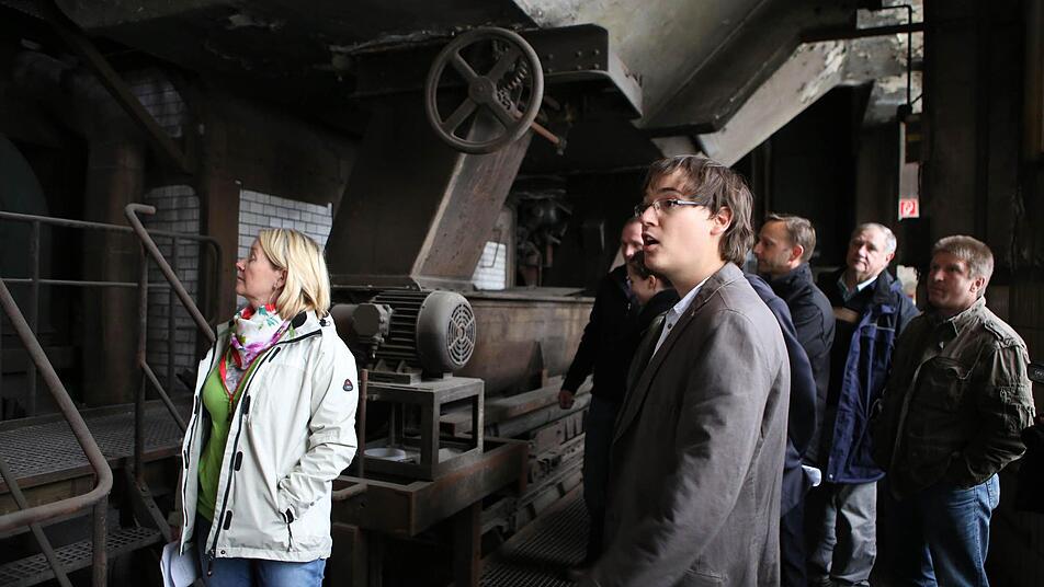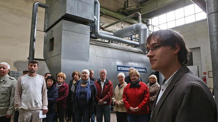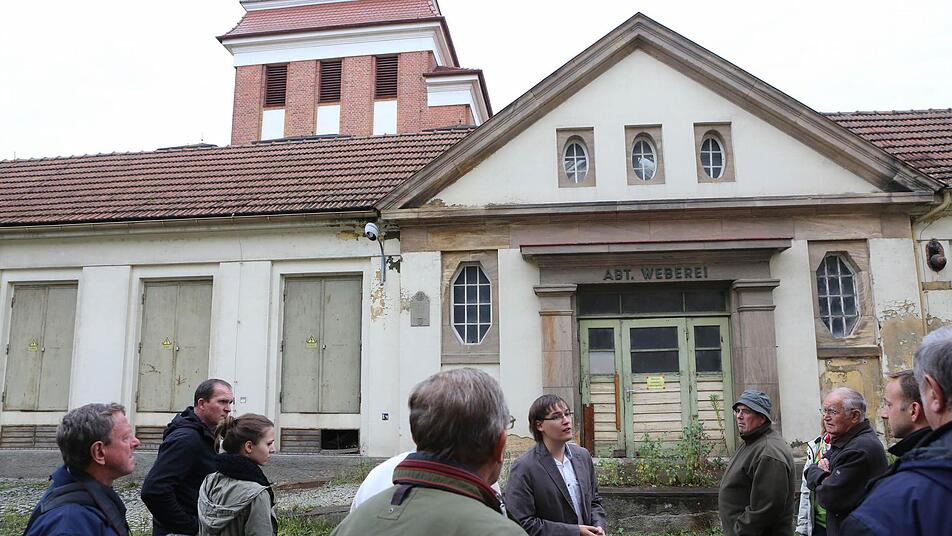 Sein Kompagnon Sebastian Türk, der selbst in der Spinnerei gelernt und gearbeitet hat, führt die große Besuchergruppe - darunter CSU-Landtagsabgeordneter Martin Schöffel ("eine riesige Aufgabe") - durch die Hallen.