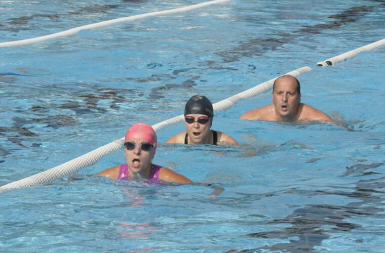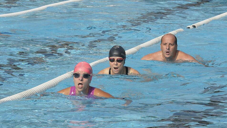 Im Freibad Kulmbach musste der Volkstriathlon wegen der großen Anzahl von Meldungen in zwei Blöcken gestartet werden. Die Athleten hatten 500 Meter im Becken zu absolvieren. Dabei "kochte" das Wasser bei bis zu acht Schwimmern auf einer Bahn. Überwiegend wurde Brust und Kraul geschwommen. Der älteste Teilnehmer, Michael Reich (ASV), bevorzugte die Rückenlage.
